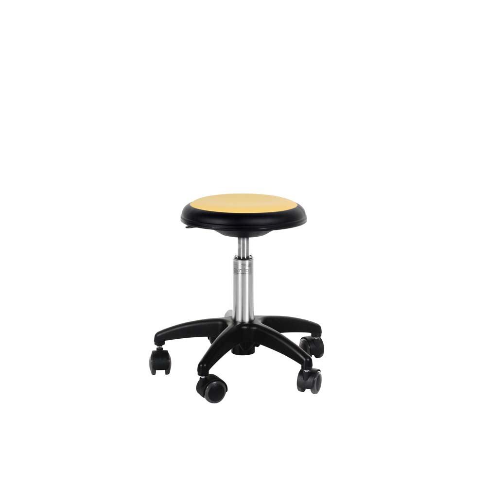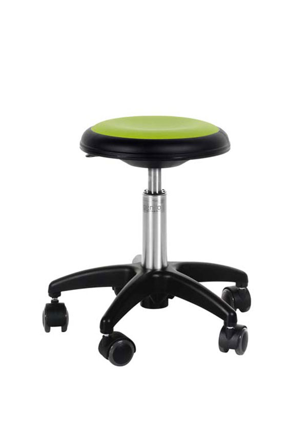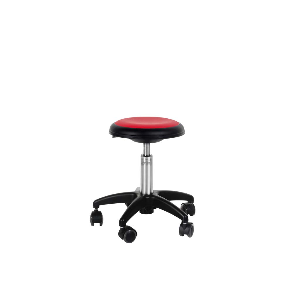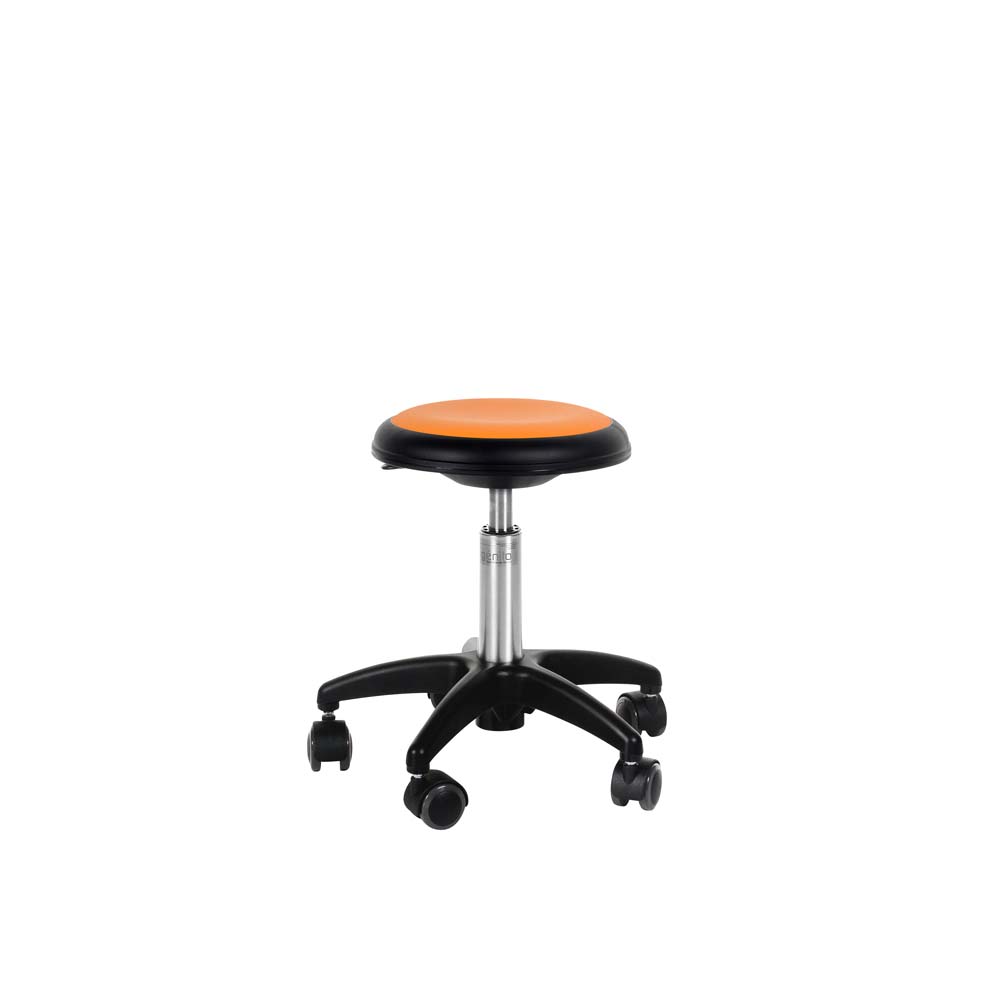 Taburet uden ryg i unikt design idet understellet er meget lavt, og sammen med en small cylinder kan siddehøjden komme ned på 30 cm. Stolen er specielt velegnet til voksne, der skal ned i børnehøjde, som f.eks. forældre eller pædagoger i daginstitutioner og specielt i garderoben.