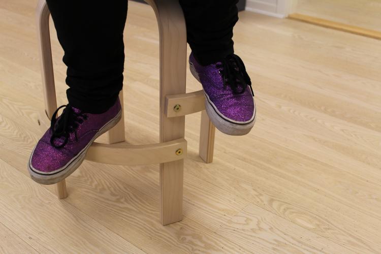 Fodstøtte til taburet. Hjælper med at støtte barnet, så barnet opnår mere ro under leg og spisning.