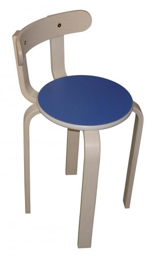 Taburet med ryglæn i 18mm hvidpigmenteret birkekrydsfiner, med slidstærk laminat på toppen.
