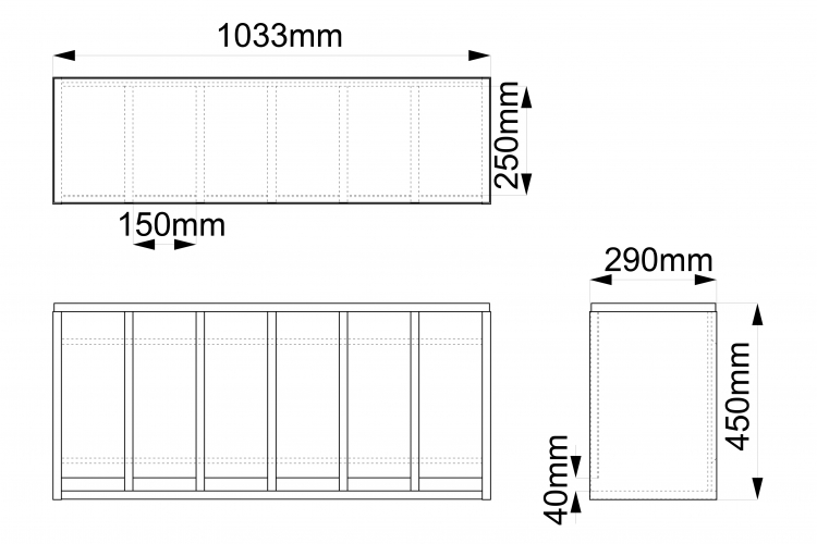 Blereol med 6 rum i 19mm spånplade hvis melamin, 2mm ABS kant i hvid