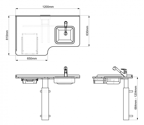 Mål: Højde:664-1204mm Bredde:1200mm Dybde:810mm