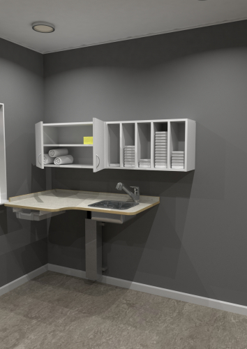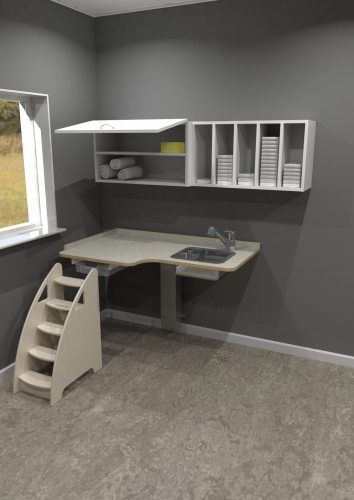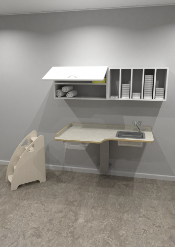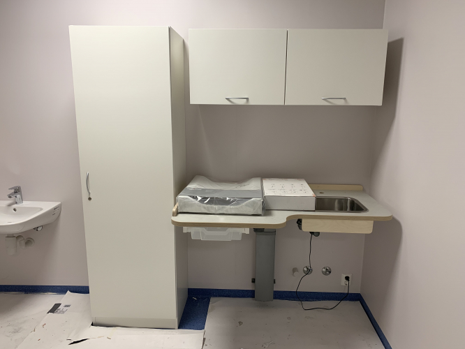 Elektrisk puslebord hæv/sænk, blandingsbatteri og håndvask