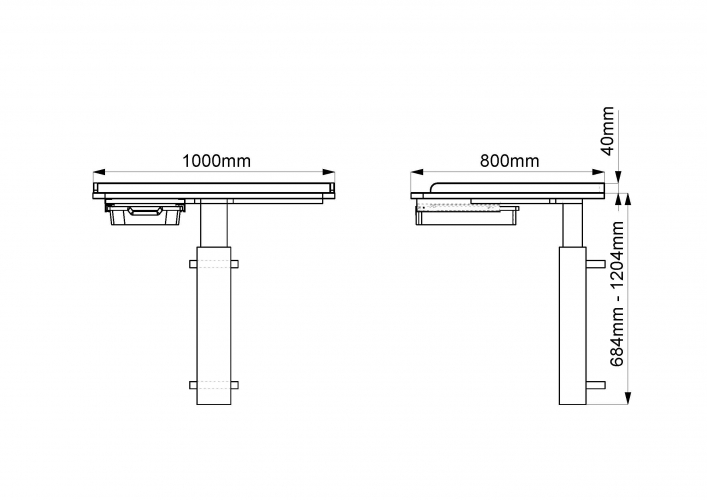 Mål: Højde:684-1204 Bredde:1000mm Dybde:800mm