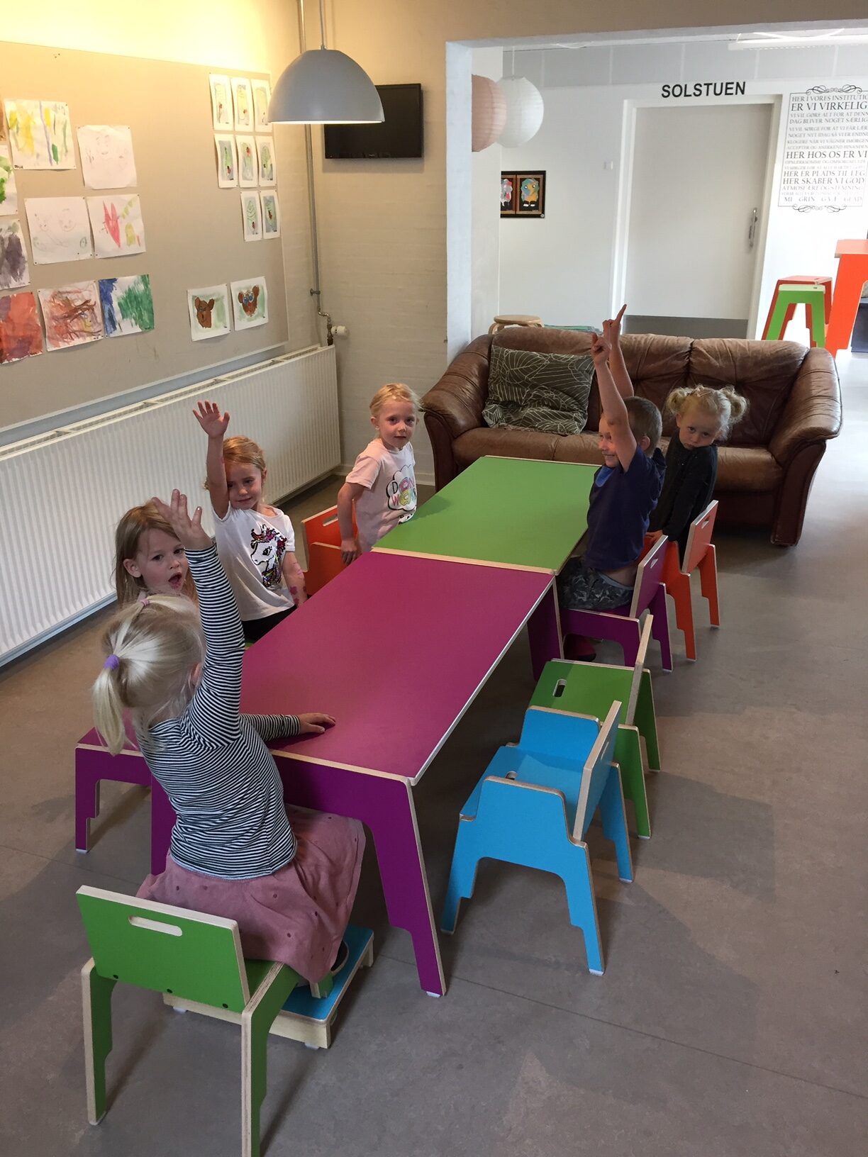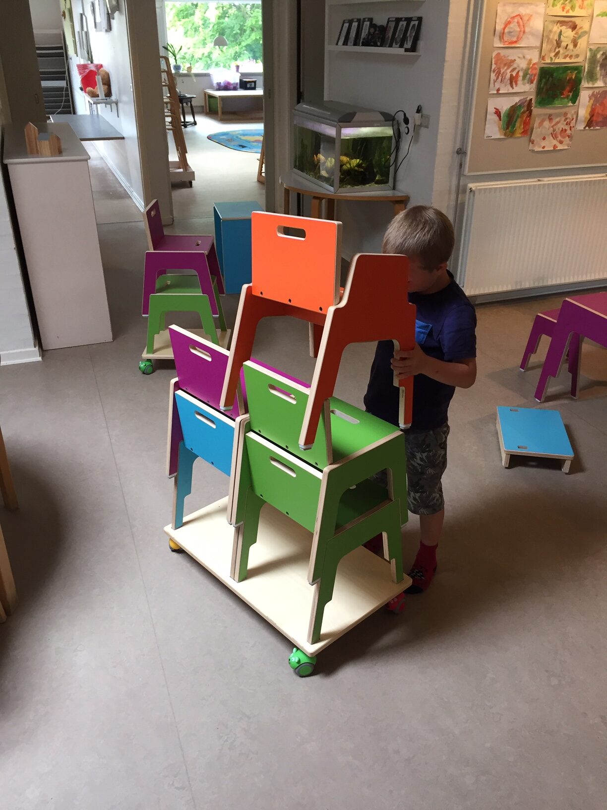 Stabelbar stol med ryg enkelt design og meget funktionel for børnene. Kan stables så pladsen ikke er et problem med disse stole.