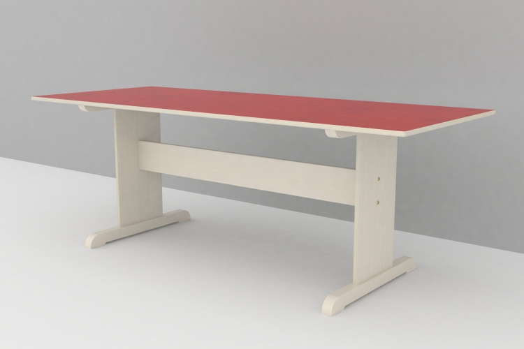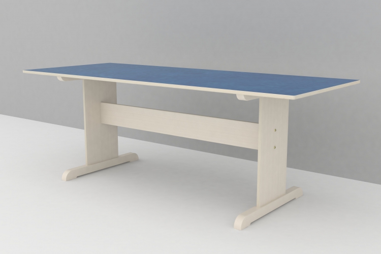 Flot og stilrent bord ideel til brug i institutionen. Bordet er udført i 18 mm hvidpigmenteret birkekrydsfiner, og har slidstærk og støjdæmpende linoleum på overfladen. Se farvekort og vælg