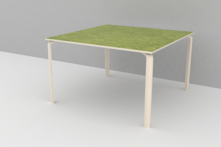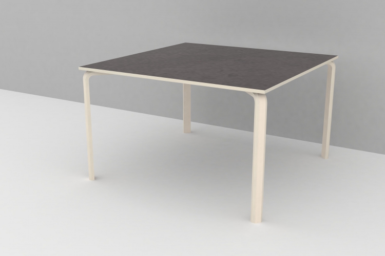 Flot og stilrent bord ideel til brug i institutionen. Bordet er udført i 18 mm hvidpigmenteret birkekrydsfiner, og har slidstærk og støjdæmpende linoleum på overfladen. Se farvekort og vælg