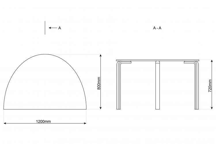 Mål: L: 1200 mm, D: 800 mm, H: 720 mm