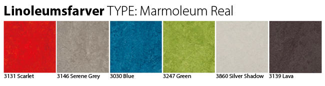 NB! Linoleum er et natur materiale og må kun rengøres med sæbespåner eller monel for at bevare en flot overflade.