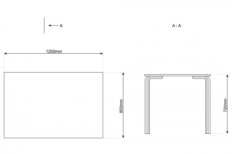 Bordhøjden er standard 72 cm. men kan bestilles i anden højde op til 72 cm