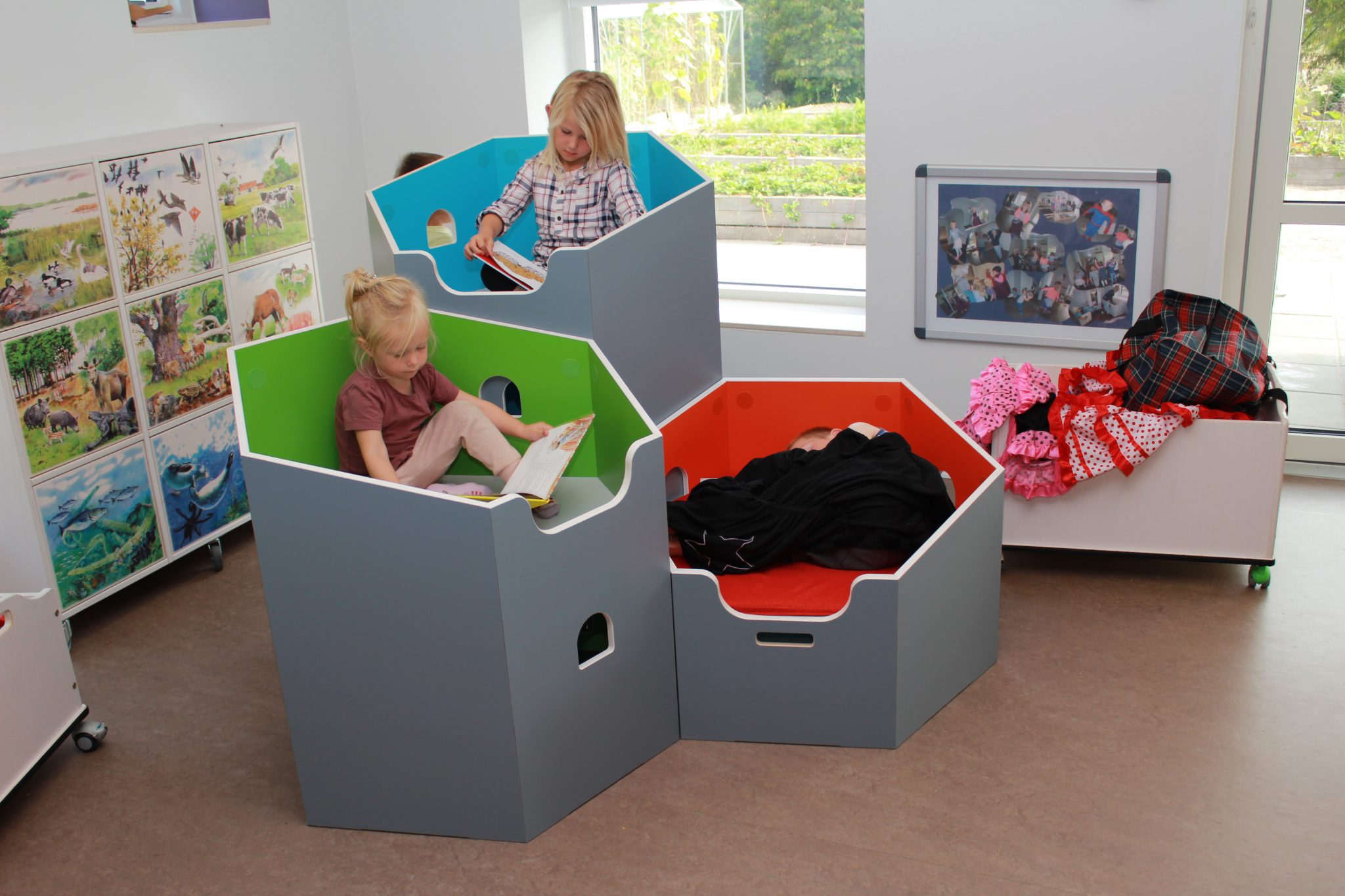 Bordene kan kombineres i forskellige 18 standardfarver, der skaber spændende og farverige spise- samt legemiljøer.