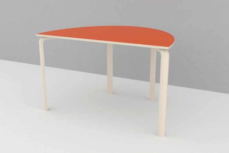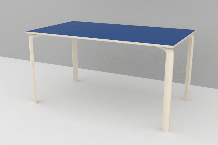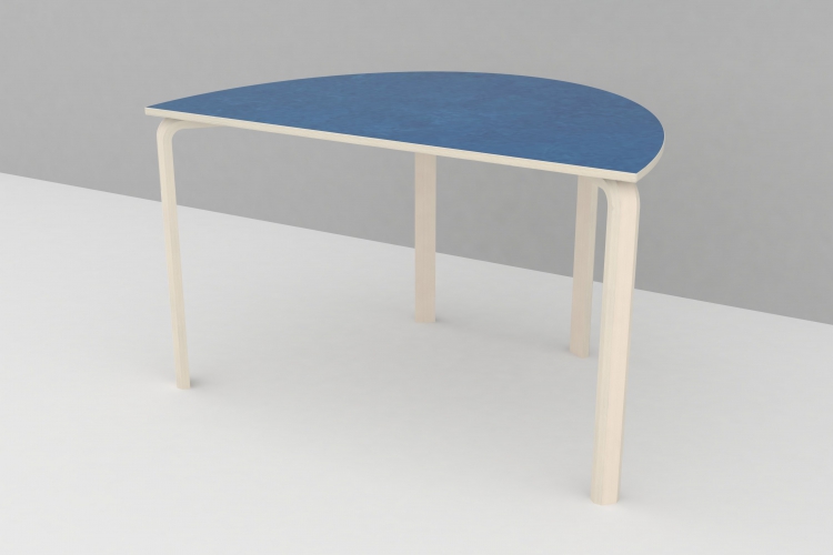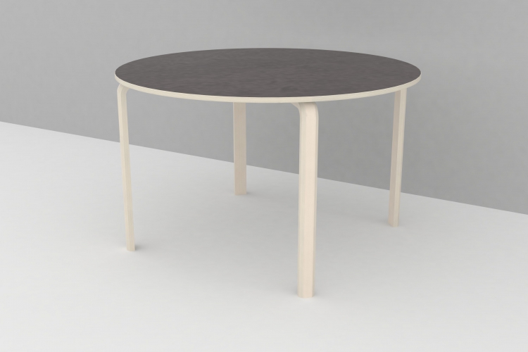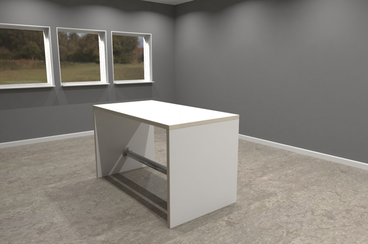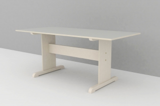 Klapbord i 18 mm hvidpigmenteret birkekrydsfiner med lysegrå slidstærk laminat på bord og bænke.