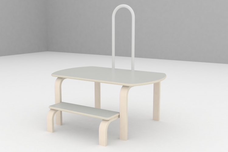 Handahl Design Ergonomisk påklædningspodie i hvidpigmenteret birkekrydsfiner.