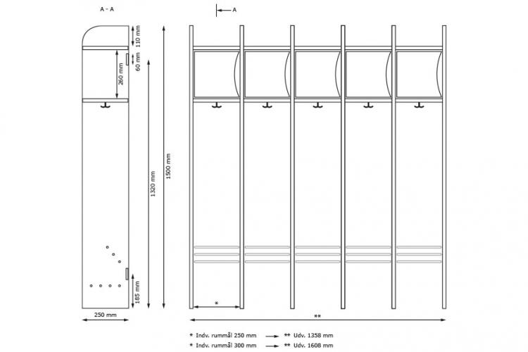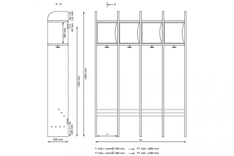 Forside / Alle produkter / Garderobe løsninger / Børnegarderober / Børnegarderobe Lux uden bænk / Børnegarderobe Lux u.bænk 1 rum