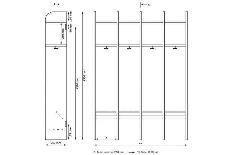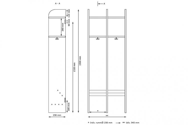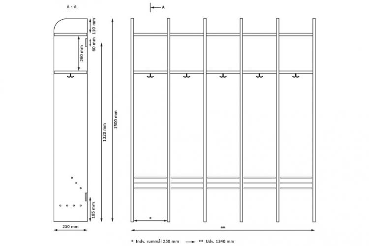 Garderoben indeholder som standard pr. sektion: