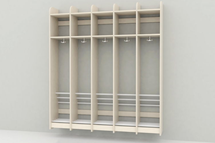 Børnegarderobe Trolde uden bænk 1 Rum. i 15 mm. hvidpigmenteret birkekrydsfiner.