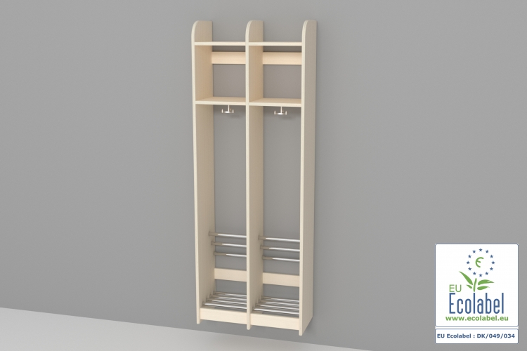 Kvalitetgarderobe med en stor slidstyrke, som er tilegnet til brug i institutioner, børnehaver, vuggestuer og skoler.