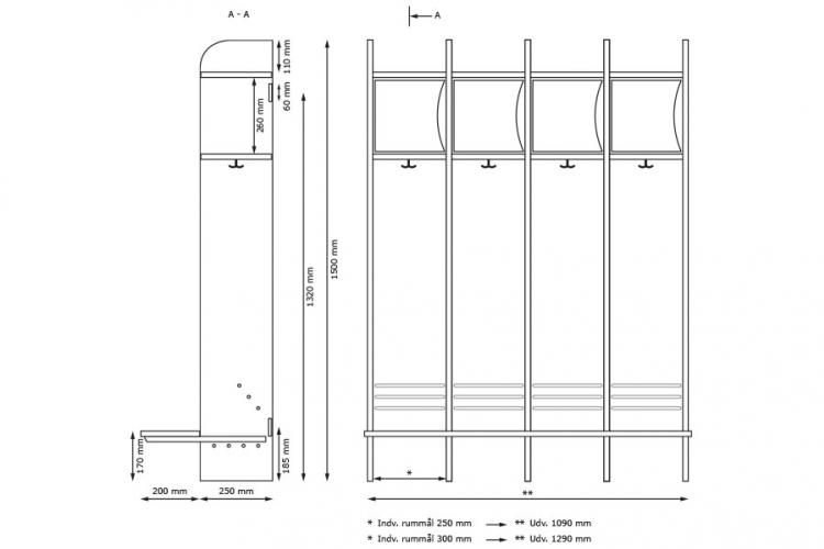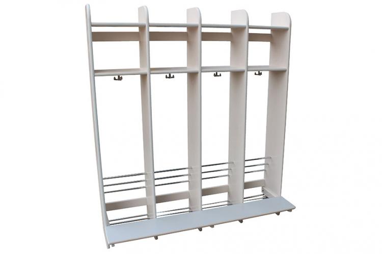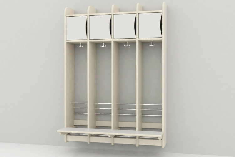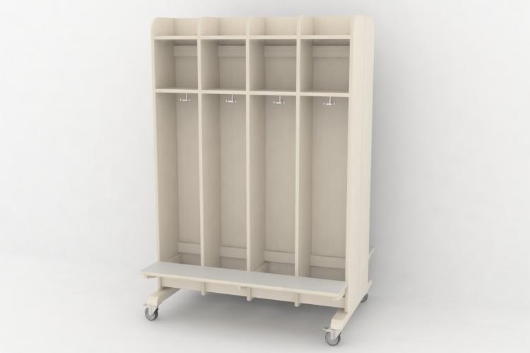 Lux Børnegarderobe 4 rum i 18 mm hvidpigmenteret birkekrydsfiner med laminatbænk.