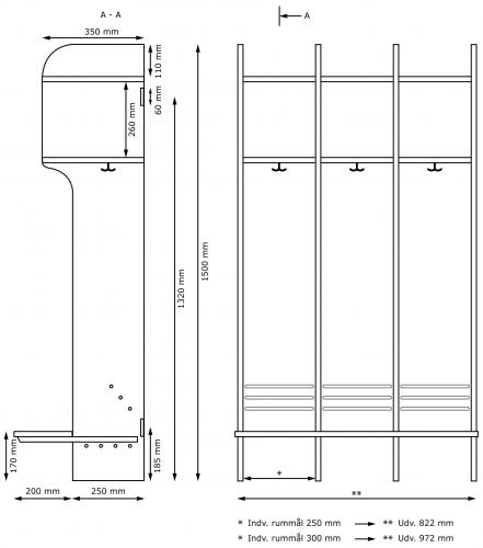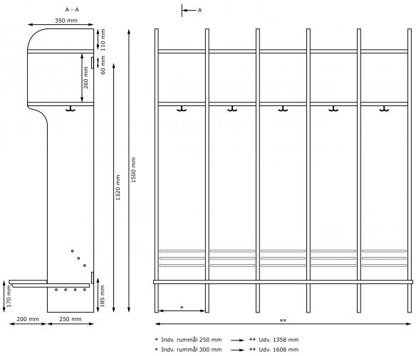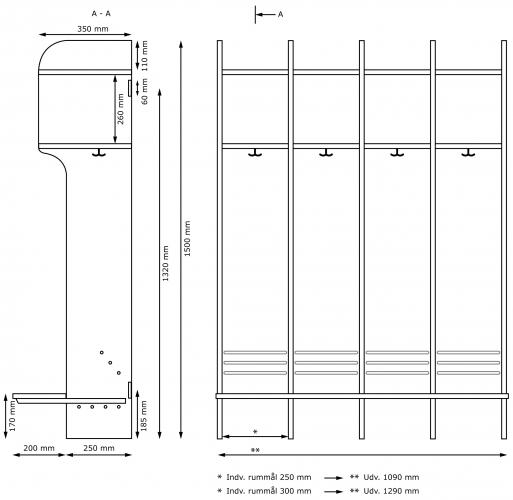 Mål: Højde:1500mm. Bredde:236/336mm. Dybde:450mm.