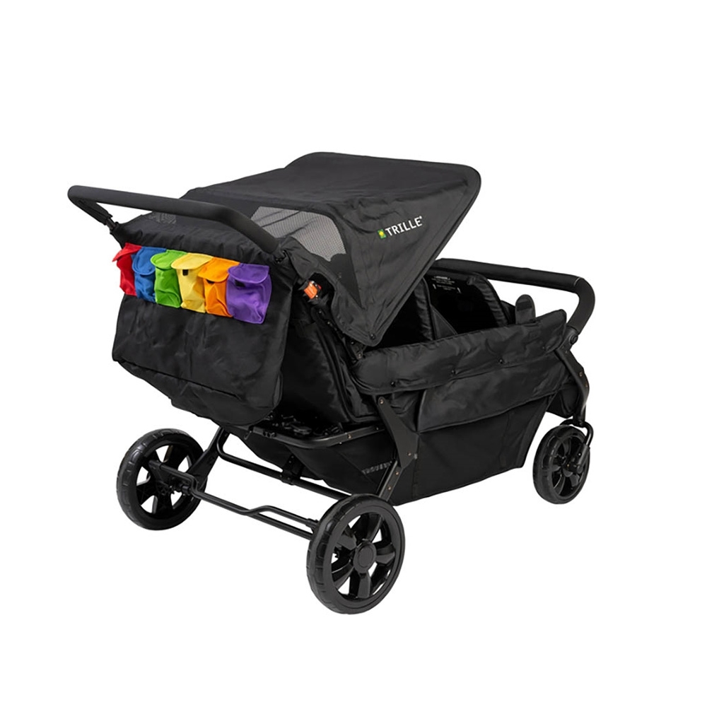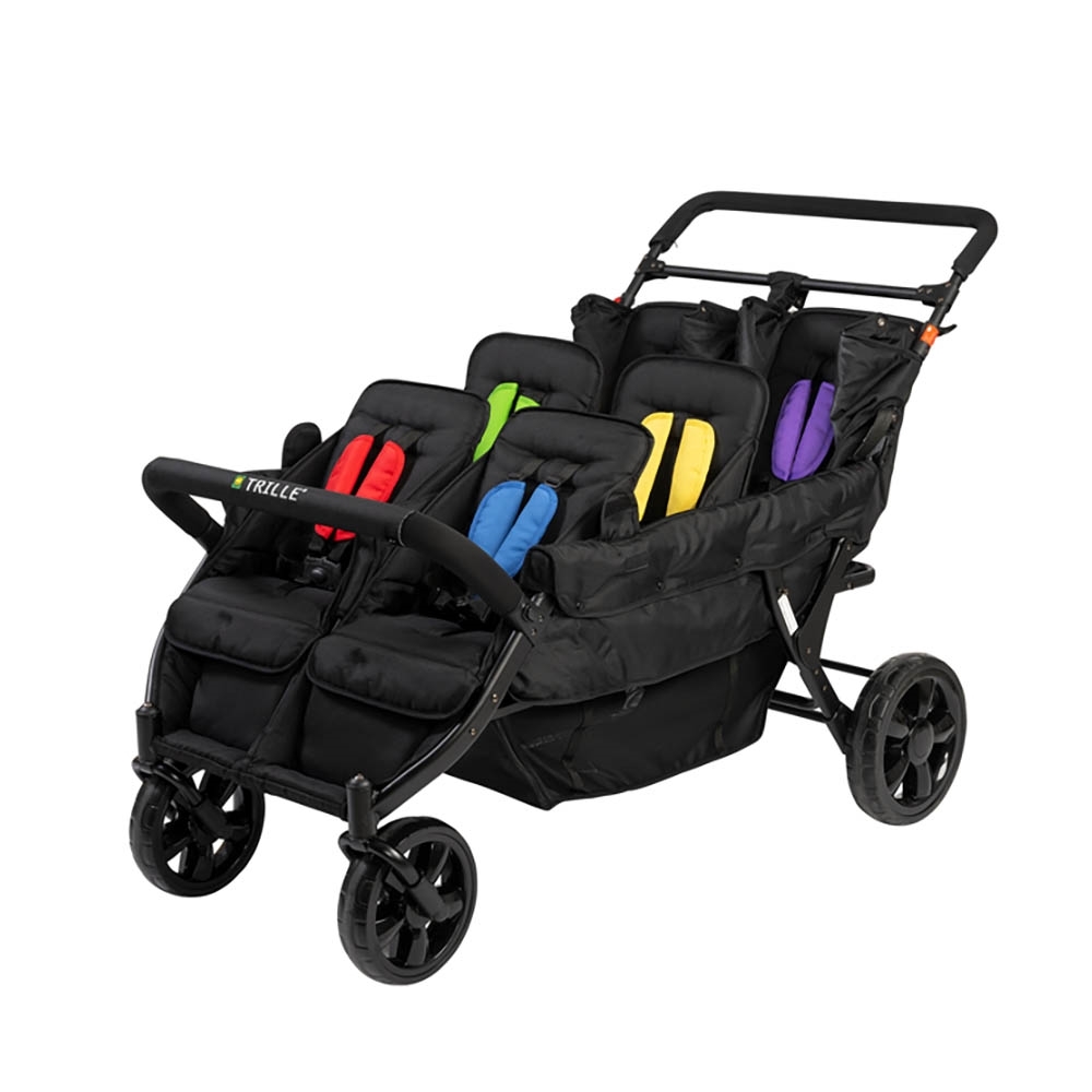 Hvert sæde kan bære op til 15 kg. Vognen er udstyret med store indkøbskurve, med rigtig god plads til opbevaring.
