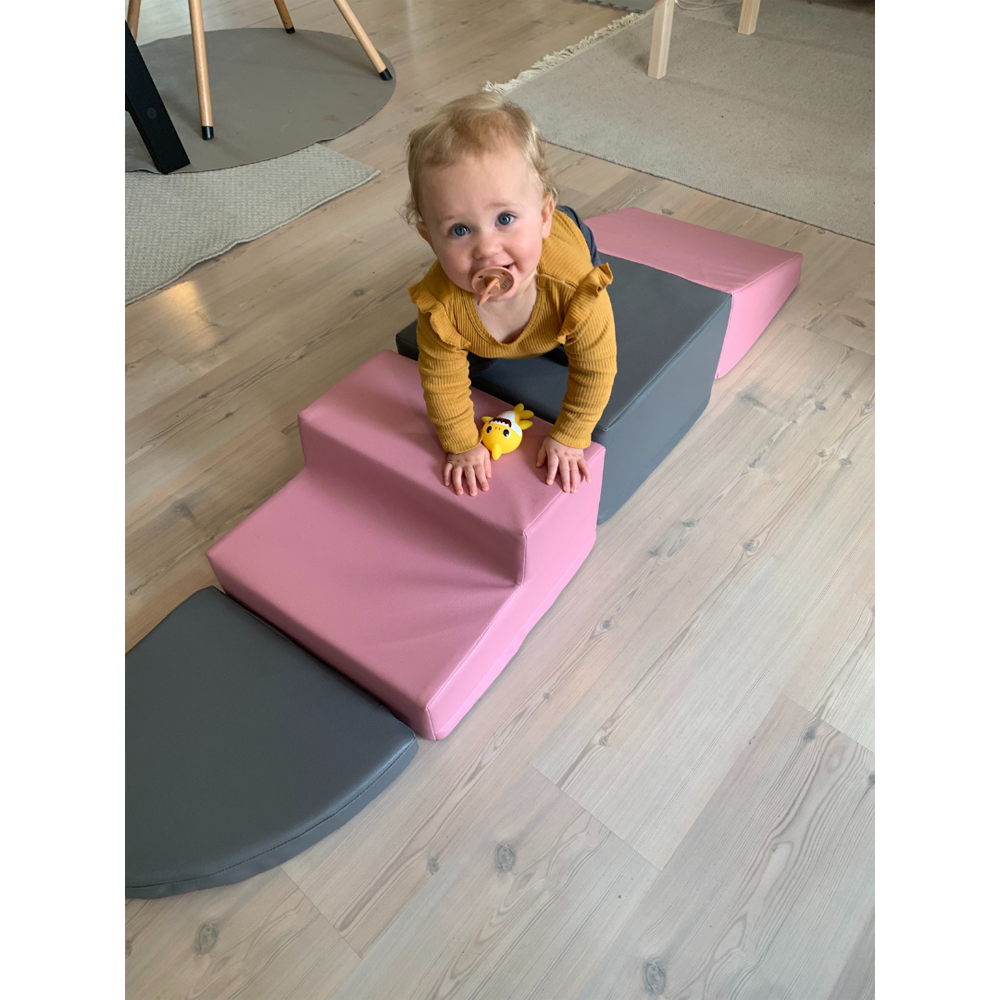 Sættet kommer i fire lækre dele, der sammen kan danne et hjørne, eller hvad kreativiteten ellers kan diske op med. Tumleskummet er produceret i blødt skum med overtræk, der er let at rengøre med en fugtig klud. Med Tumleskum træner dit barn sin motorik og balance gennem aktiv leg og bevægelse på en sikker måde, da der ikke er nogen skarpe kanter eller hårde overflader.