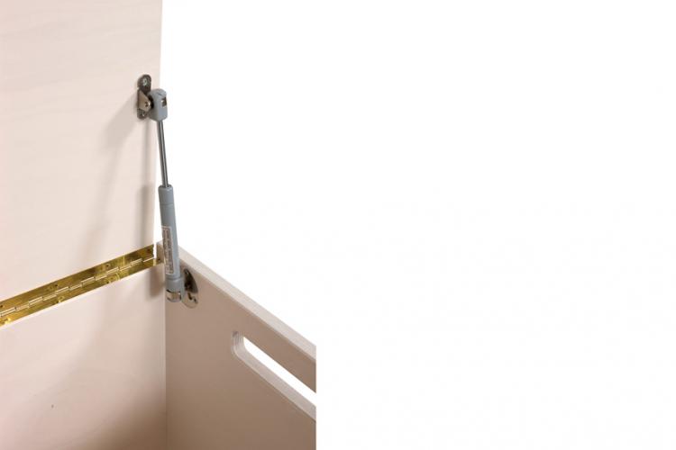 Leveres med integreret gas-dæmper i låget, så klemrisiko og støj minimeres.