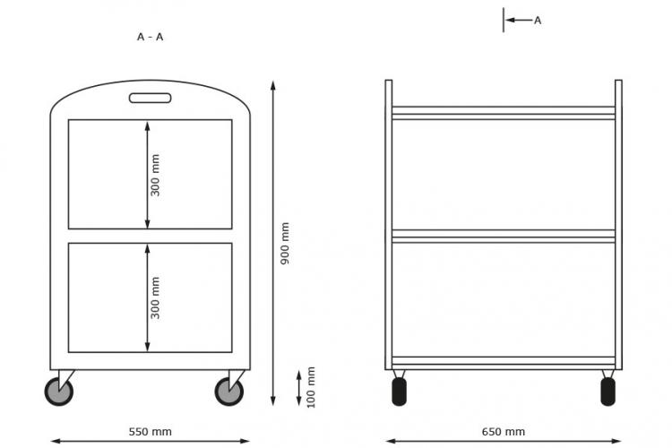 Mål: Højde:900 mm. Bredde:550 mm. Længde:650mm.