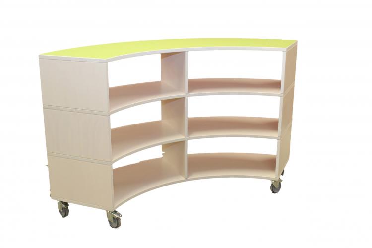 Stor play reol med 3 hylder i 18 mm. hvidpigmenteret birkekrydsfiner. Leveres standard med laminattopplade i lys grå laminat.