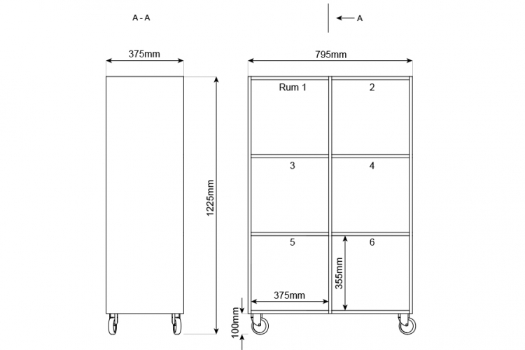 • Leveres med kraftige låsbare hjul og med 15 mm bagbeklædning.