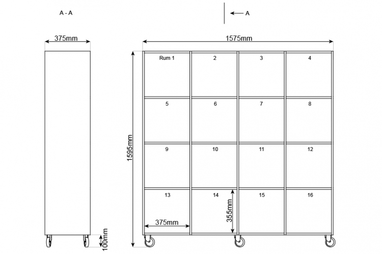 Forside / Alle produkter / Kubus reol 16 rum på hjul