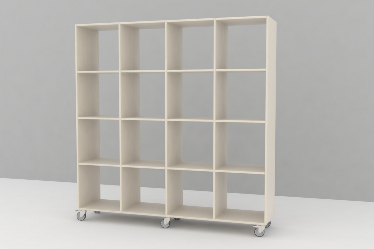 Mobil Kubus reol 16 rum i 15mm hvidpigmenteret birkekrydsfiner.