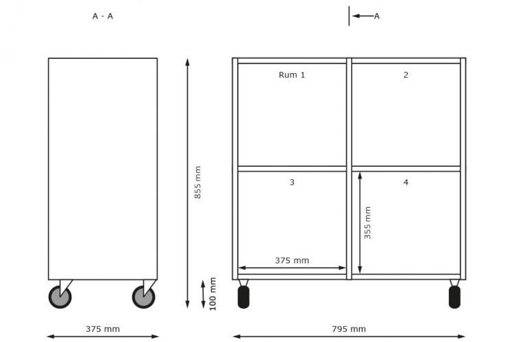 Forside / Alle produkter / Kubus reol 4 rum på hjul