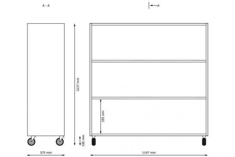 Mål: Højde:1237mm. Bredde:1197mm. Dybde:375mm.