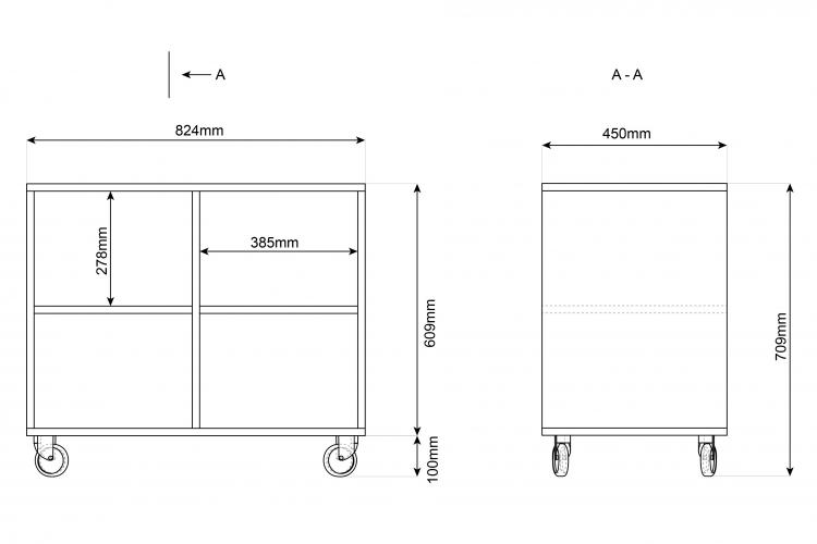 Forside / Alle produkter / Mobilreol 4 rum på hjul
