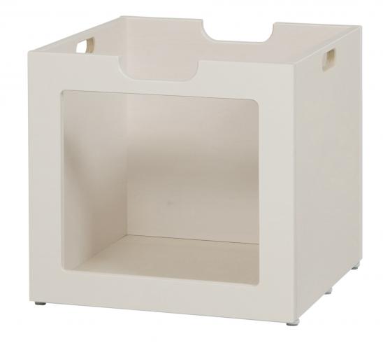Opbevaringskasse med glas i front udført i 15 mm hvidpigmenteret birkekrydsfiner passer til alle Kubus reoler.