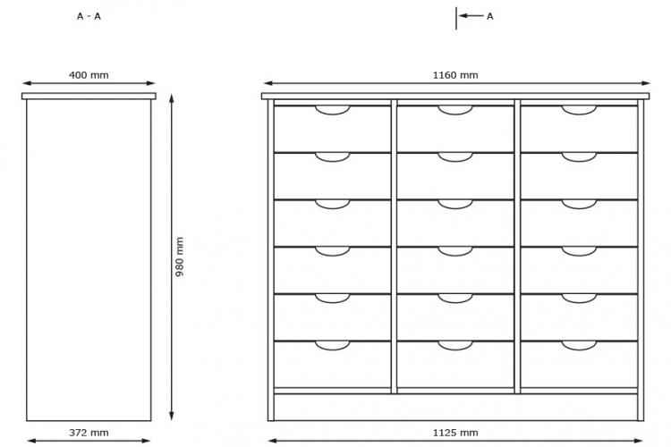Forside / Alle produkter / Skuffereol 18 store skuffer