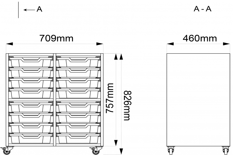 Mål: Højde: 826 x Bredde: 709 x Dybde: 460mm