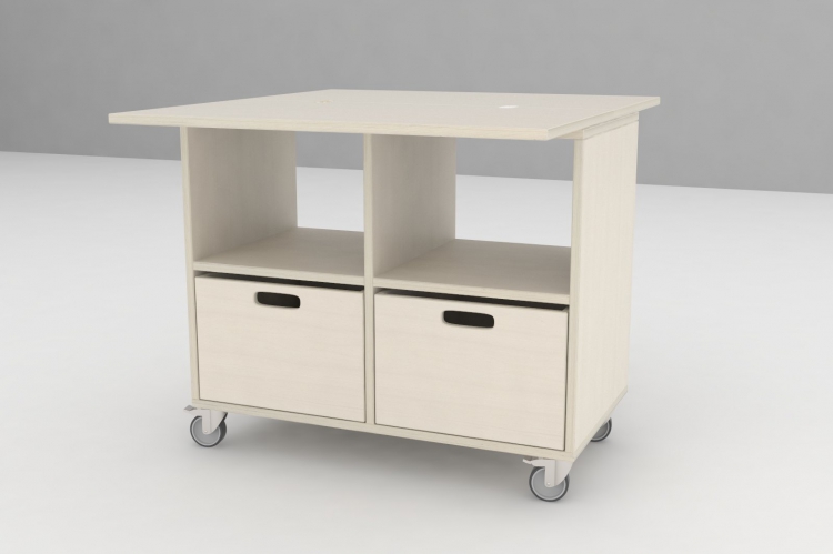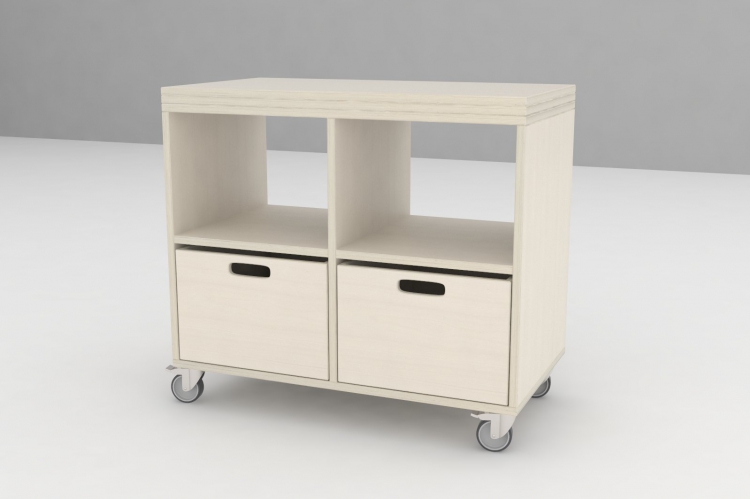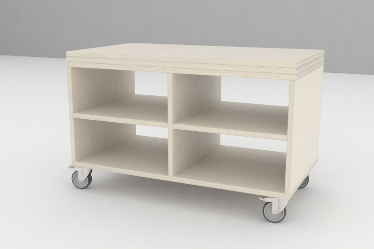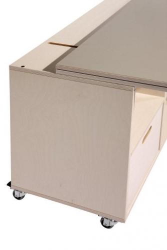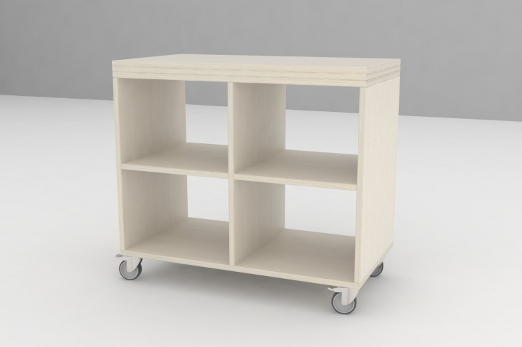 Mobil Funky bordreol med 4 rum i 18 mm hvidpigmenteret birkekrydsfiner kan nemt kan slås ud til legebord, sofabord m.v.