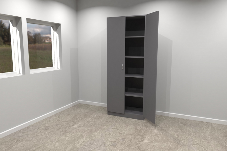 Skoleskab med 1 fast hylde – 3 flytbare hylder. Skabet er udført i 19 mm spånplade med melamin og 2 mm ABS-kant.