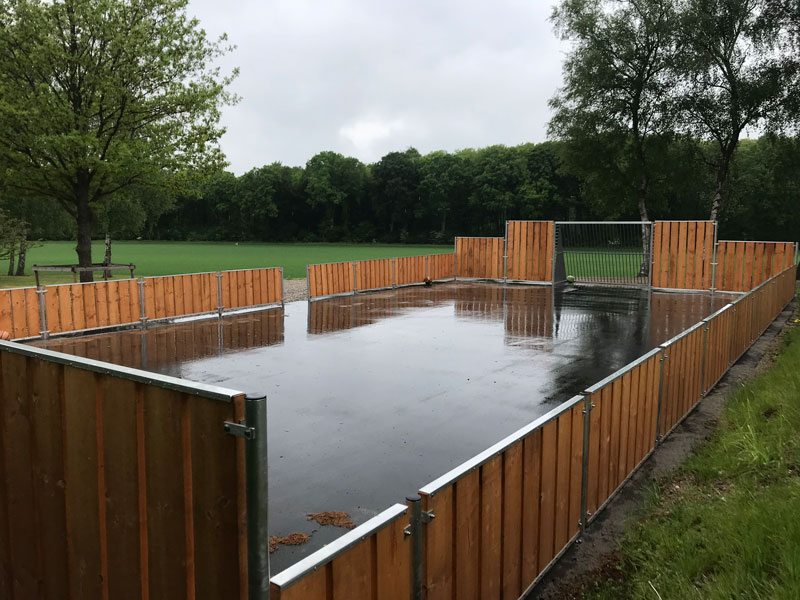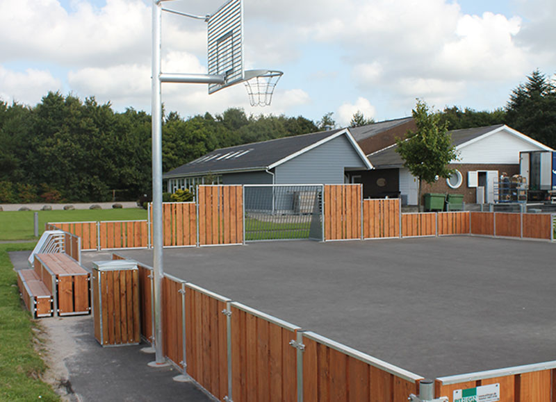 Vi kan f.eks. tilpasse en bane præcis til det område der er til rådighed, og dermed sikre en optimal udnyttelse af pladsen. Og vi kan udstyre banen med hockey-, basket- håndbold- og fodboldsmål.