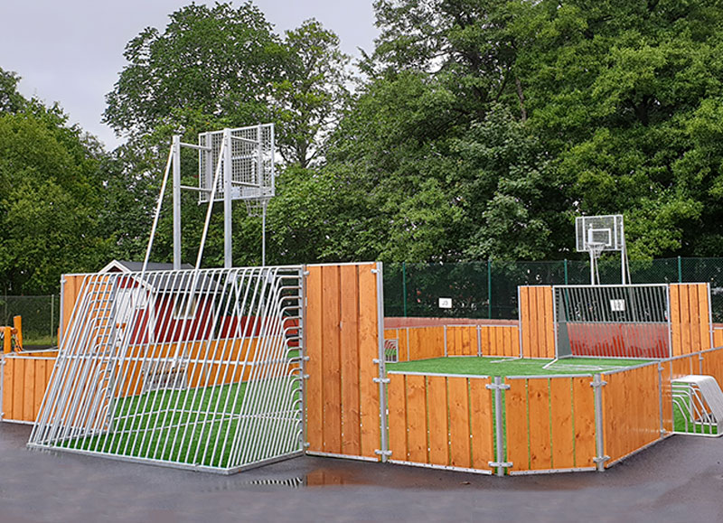 Multibaner i træ giver et godt udtryk, og danner rammer for et aktivt område til børn og unge.