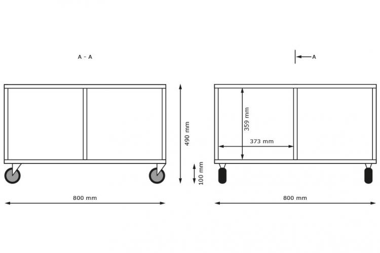 Mål: Højde: 490mm. Bredde:800mm. Længde: 800mm