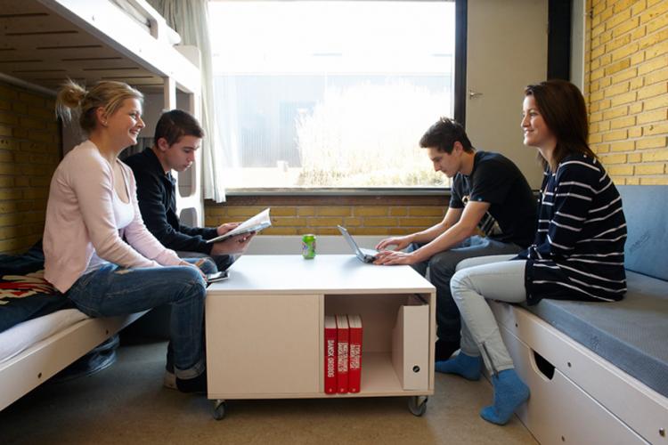 Mobilt sofabord i 18mm hvidpigmenteret birkekrydsfiner med 4 opbevaringsrum og slidstærk laminat på bordplade.
